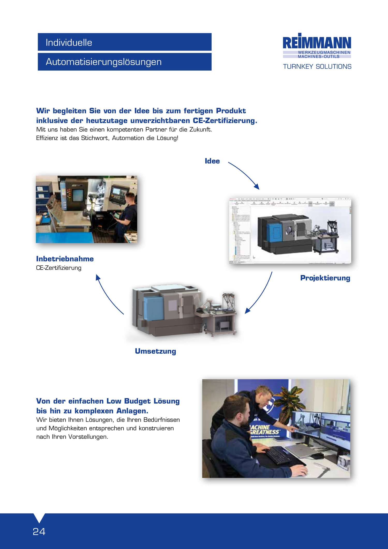 Universelle Kundendiensttechniker mit langjähriger Erfahrung in Mechanik, Hydraulik, Pneumatik, Elektrik, Elektronik und Programmierung. Inbetriebnahmen und Schulungen durch REIMMANN Kundendiensttechniker oder durch Werksmonteure. Schulung auf Maschinensteuerungen SIEMENS , FANUC, HEIDENHAIN. Überholung von Baugruppen oder Generalüberholung von Werkzeugmaschinen. Anbau von Zubehör.